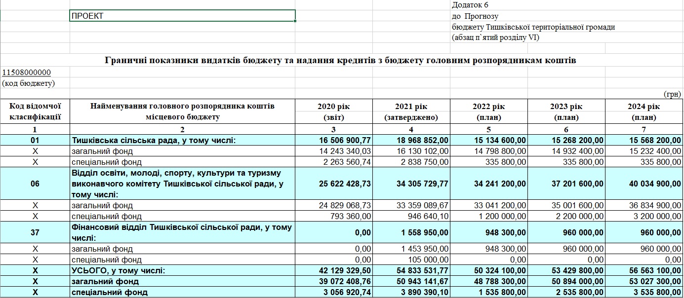 «Прогноз бюджету Тишківської сільської територіальної громади на 2022-2024 роки (далі Прогноз) розроблений відповідно до вимог статті 751 Бюджетного Кодексу України, Податкового кодексу України, постанови Кабінету Міністрів України від 31 травня 2021 року № 548 «Про схвалення Бюджетної декларації на 2022-2024 роки», наказу Міністерства фінансів України від 02.06.2021 №314 «Про затвердження Типової форми прогнозу місцевого бюджету та Інструкції щодо його складання» та листа Міністерства фінансів України від 09.06.2021 № 05110-14-6/18181 «Про прогнози місцевих бюджетів на 2022-2024 роки», - йдеться в тексті документа.